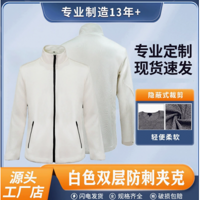 厂家现货双层防刺防割白色加厚夹克耐磨防砍拉链防风时尚冲锋衣